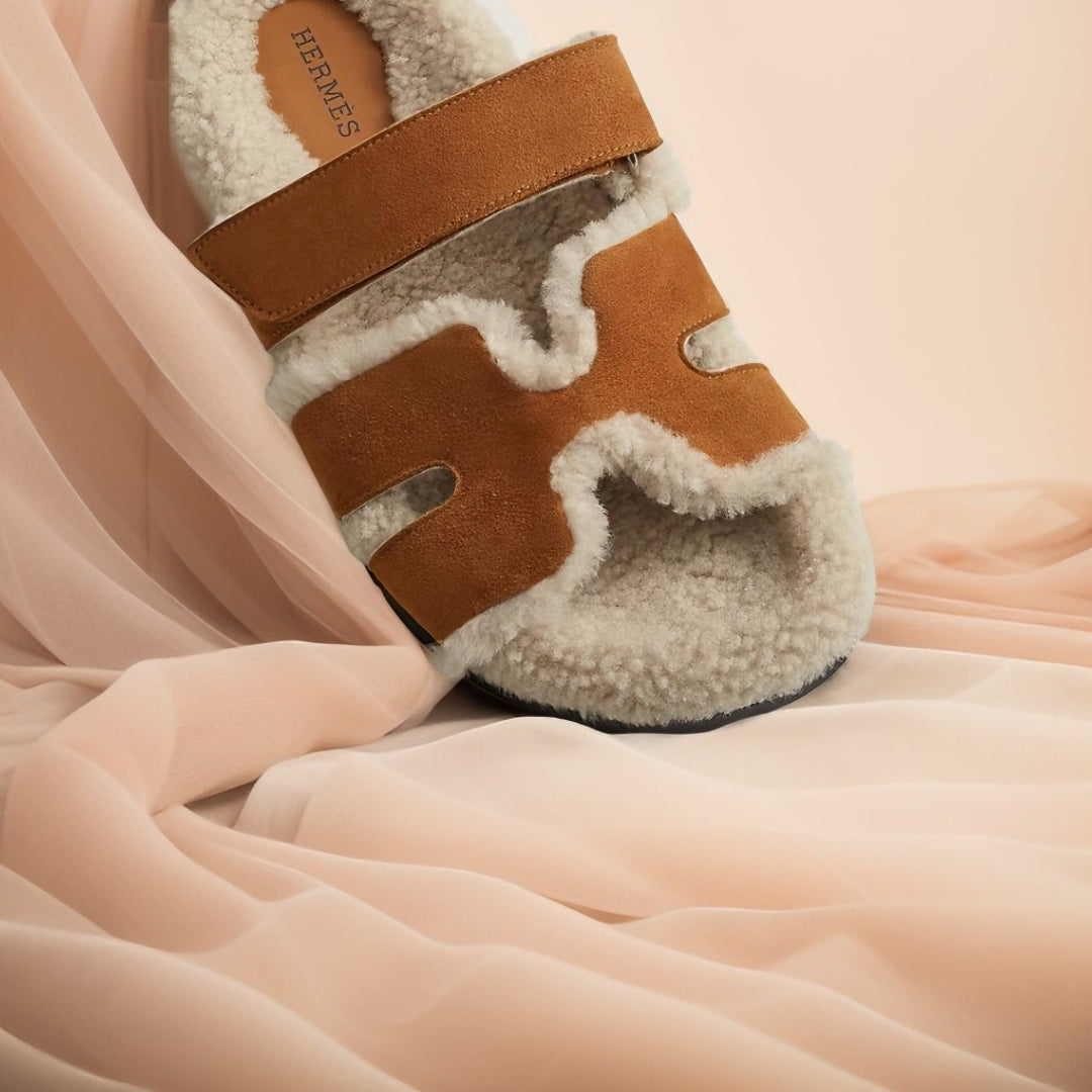 Hermes Slippers Brown with Fur